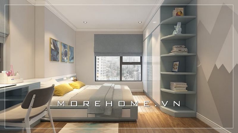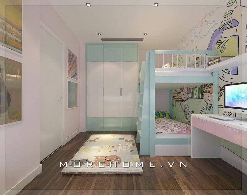 Morehome gợi ý cho bạn mẫu kệ tủ quần áo hiện đại kết hợp tab đầu giường tiện nghi tại phòng ngủ trẻ em