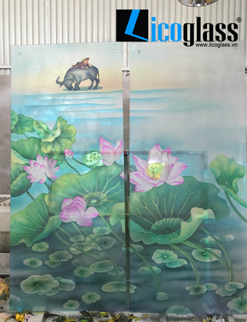 tranh kinh hoa sen , tranh kính hoa sen , mẫu tranh kính hoa sen