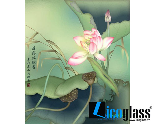 tranh kính , tranh kính hoa sen , tranh kính nghệ thuật